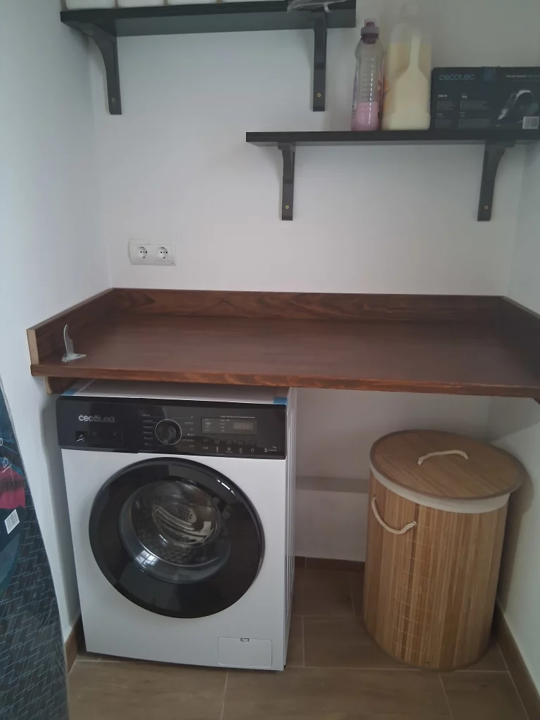 A la primera planta hi ha un espai amb rentadora i planxa.