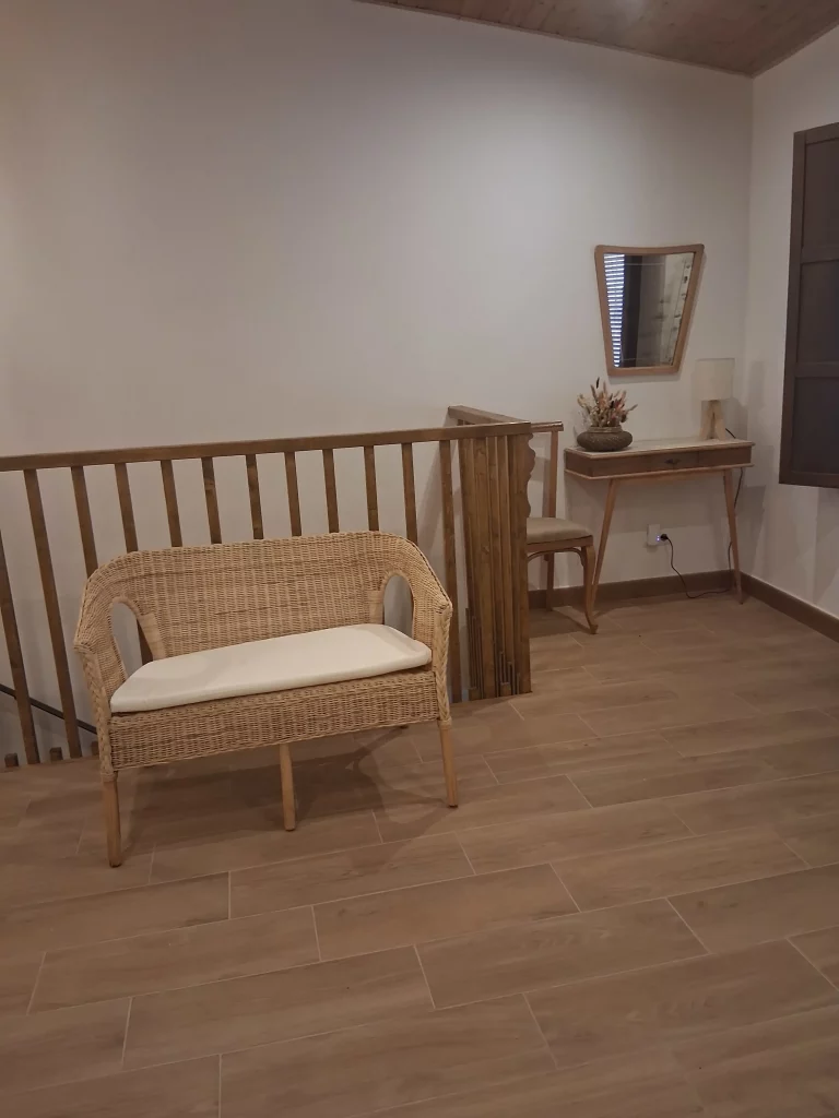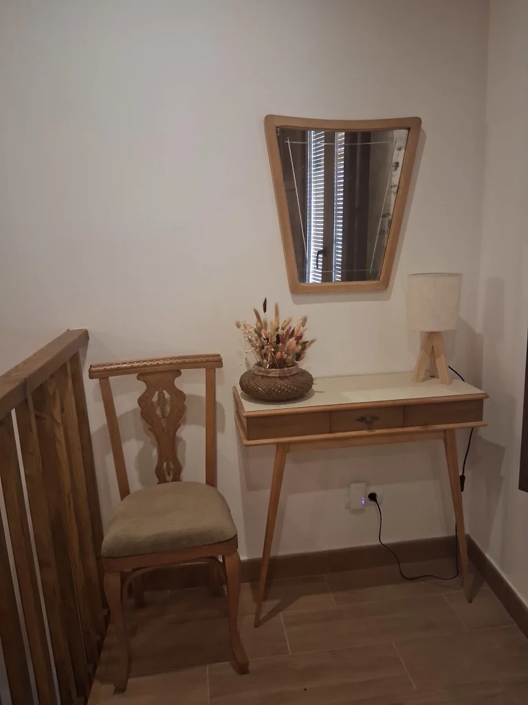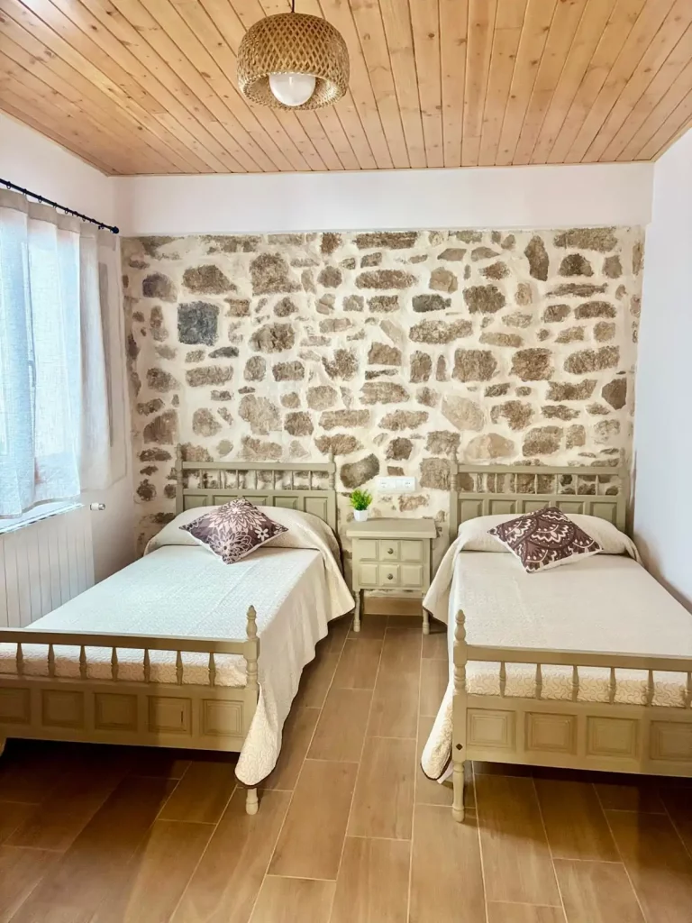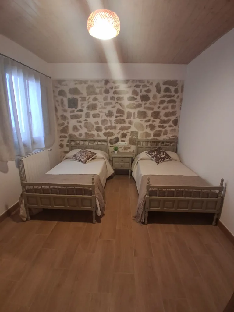 A la primera planta trobareu una habitació decorada amb estil rústic, amb dos llits individuals – ideal per a persones que busquin relaxar-se i desconnectar. Disposa d’una finestra que dóna al pati de llums, des d’on podreu sortir a prendre la fresca.