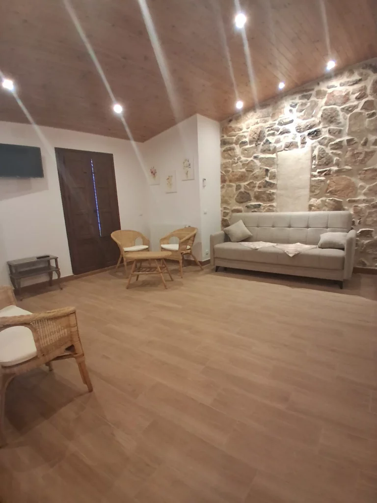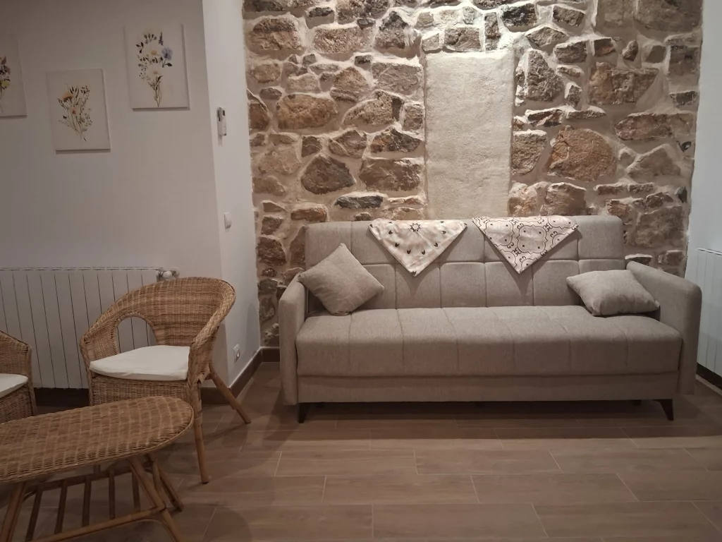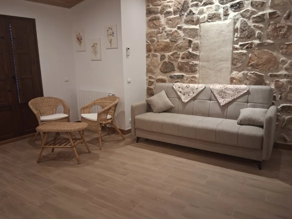 A la zona comú hi ha un sofà llit i una tauleta amb dos còmodes sillons per gaudir dels jocs de taula.