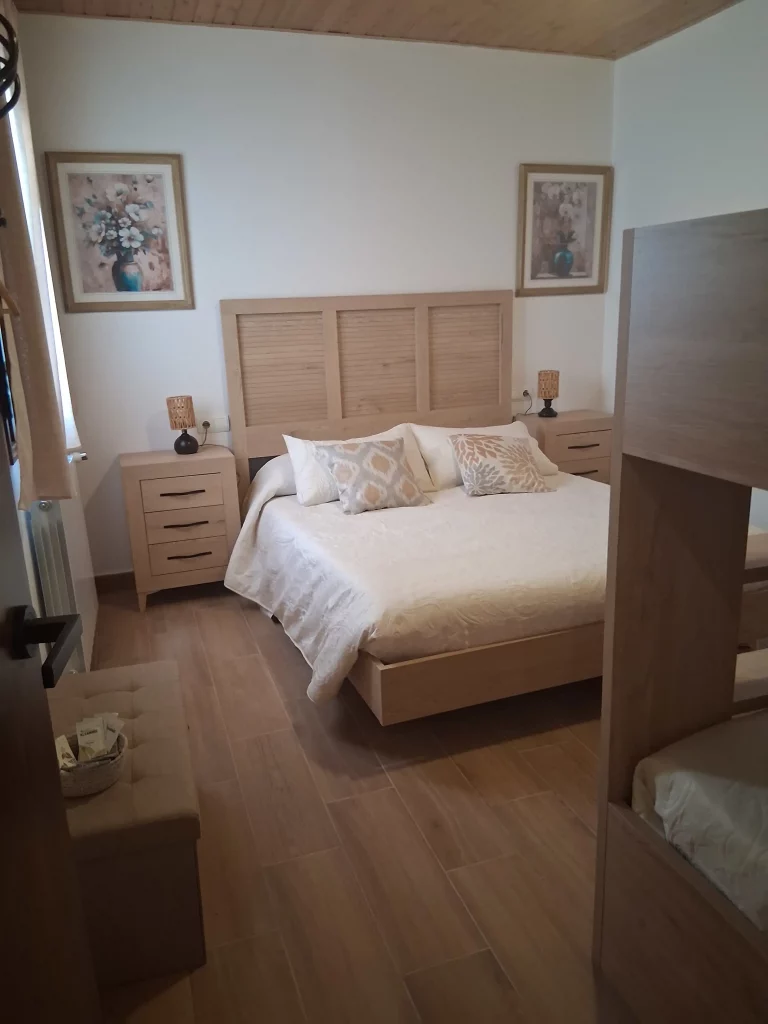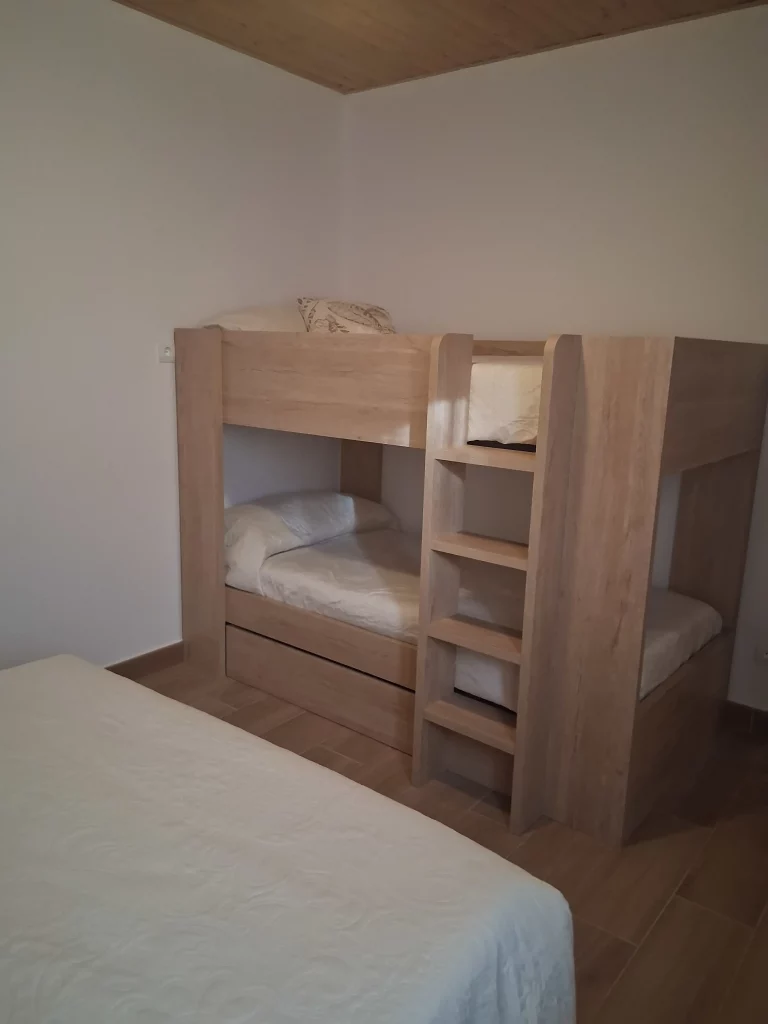 A la segona planta hi ha una habitació quadruple amb un llit gran de 150 cm i unes lliteres amb dos llits de 90 cm, ideal per a famílies amb nens.
